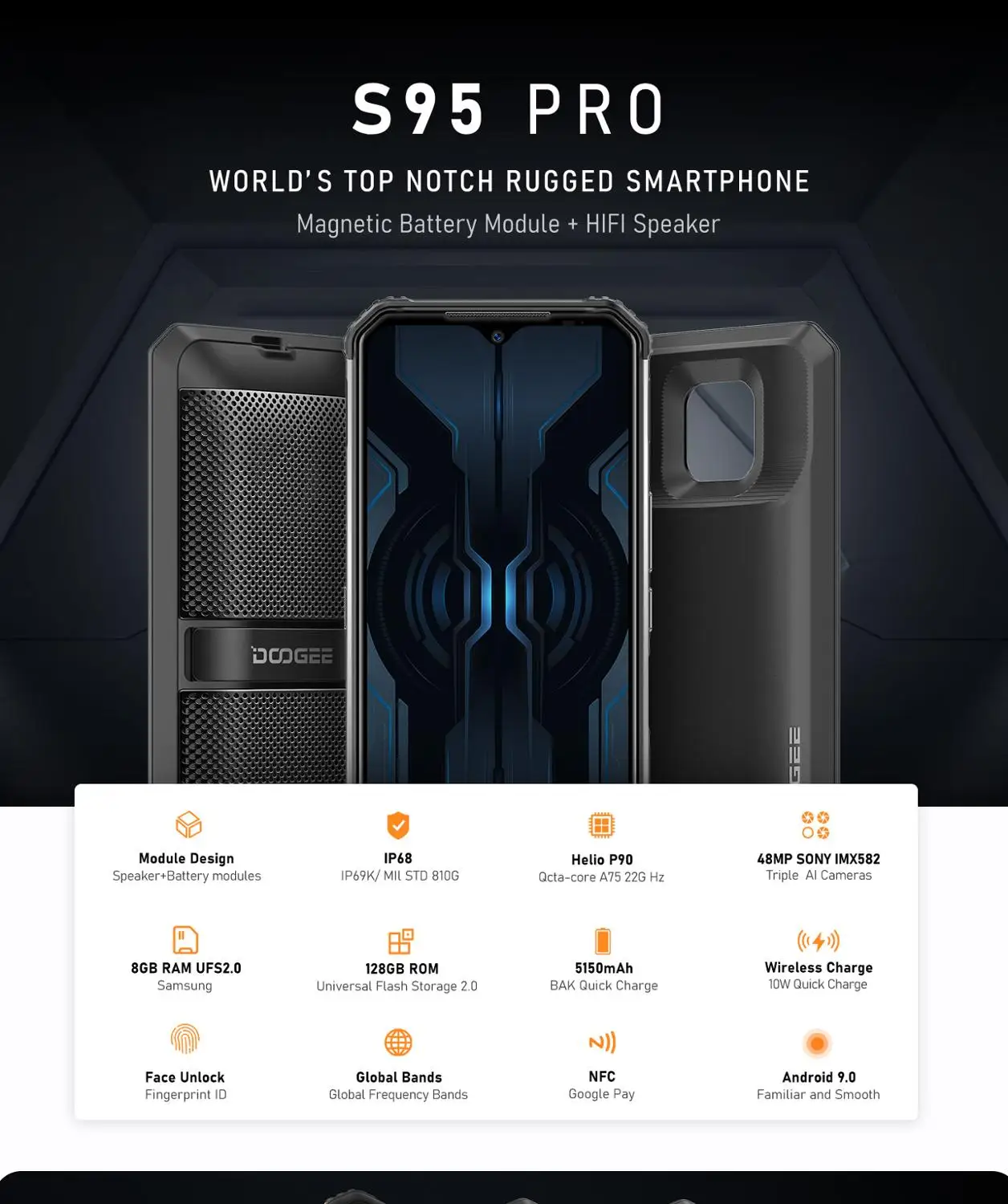 - Product name : DOOGEE S95 Pro IP68/IP69K Modular Rugged Phone 6.3'' Helio P90 Octa Core 8GB 128GB 5150mAh Sony 48M